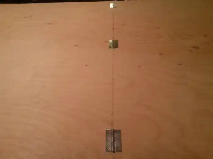 Чтобы его можно было складывать и убирать на хранение, лист разрезали по середине и скрепили петлями.