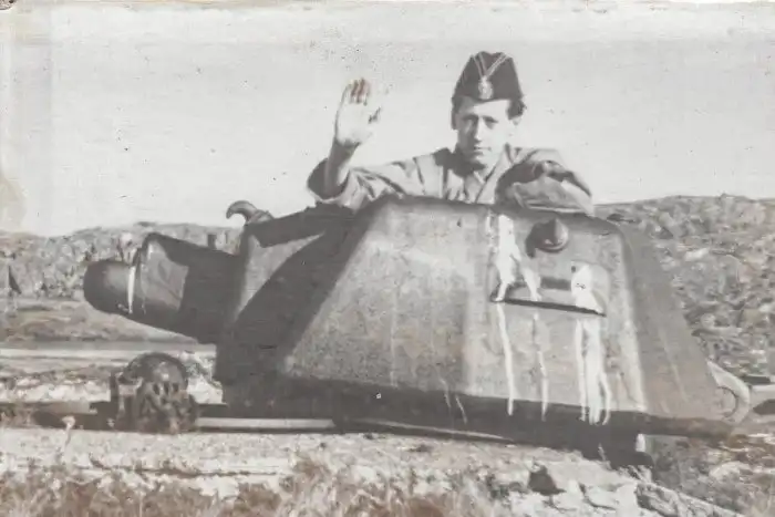 Башня от танка Hotchkiss H35 была установлена немцами в качестве неподвижной огневой точки. Эти танки достались немецкой армии в качестве трофеев после окончания французской кампании, однако боевое применение Hotchkiss H35 в условиях труднопроходимой местности Заполярья не оправдало себя из-за частых поломок этих танков, их низкой боевой эффективности и уязвимости.