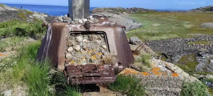 Сзади располагался люк. К сожалению, доступ через него невозможен, так как внутреннее пространство башни было использовано в качестве фундамента.Башня проделала долгий путь из Франции до малоизвестной бухты в труднодоступном районе современной Мурманской области. Необычное и интересное эхо войны.