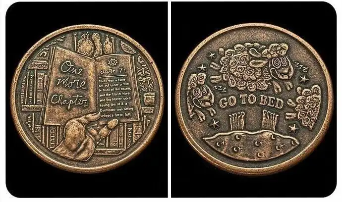 Эта монета, на одной стороне которой написано "иди спать", а на другой - "еще страничку", поможет решить, достаточно ли вам читать на ночь, или можно просмотреть еще несколько страниц.