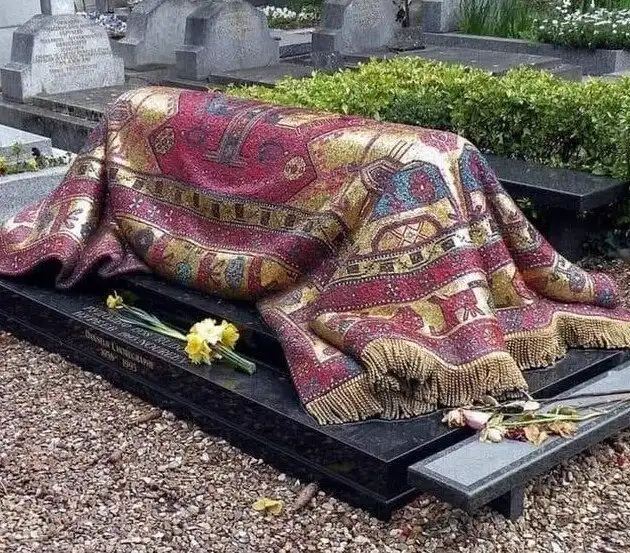 Это могила Рудольфа Нуреева, великого русского танцовщика. Могила была спроектирована так, чтобы выглядеть как ковер, но она полностью сделана из бронзы и стекла
