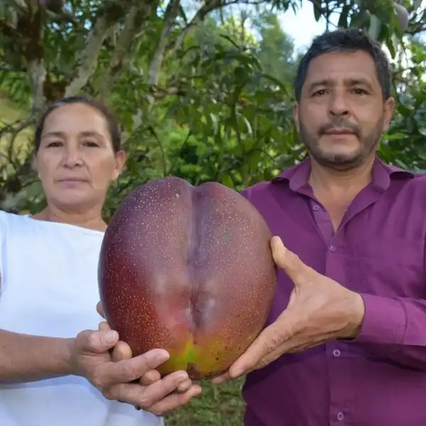 Этот впечатляющий мегаманго весит 4,25 килограмма. Колумбийские фермеры Герман Орландо Новоа Баррера и Рейна Мария Маррокин побили рекорд, сумев вырастить самый тяжёлый в мире манго в 2020 году.