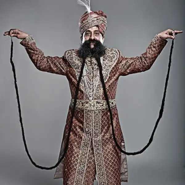 Рам Сингх Чаухан из Индии является обладателем самых длинных усов в мире. Длина усов составляет 4 метра 30 сантиметров. Рам Сингх Чаухан не состригал их с 1970 года.