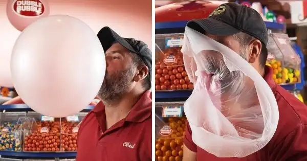 50,8-сантиметровый шарик из жвачки без использования рук надул Чад Фелл