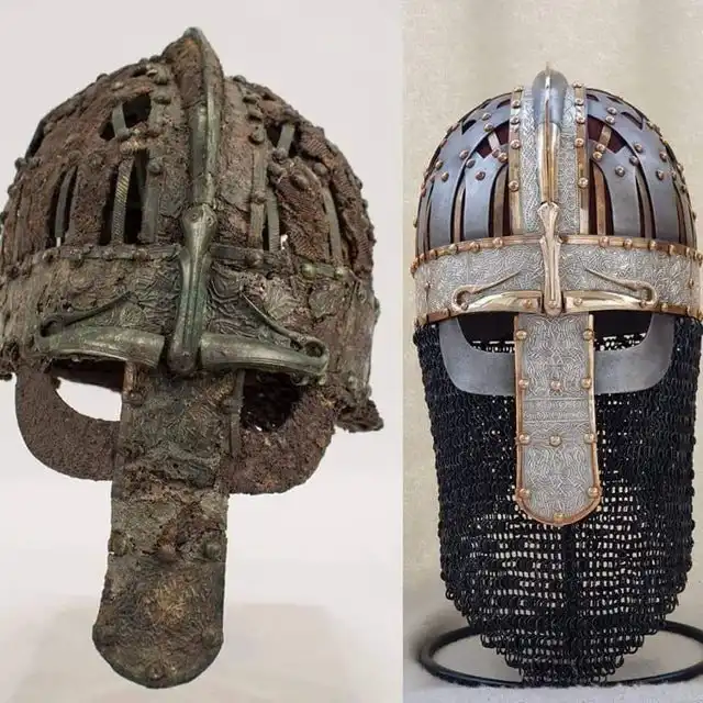Скандинавский шлем и его восстановленная копия. Датируется 7 веком нашей эры