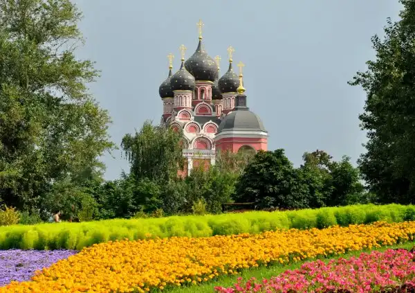 ВДНХ. Храм Тихвинской Иконы Божией Матери в Алексеевском. Русское Узорочье. XVII век. Я живу рядом с этим храмом и являюсь его прихожанином. Недавно вокруг разбили прекрасный парк с цветниками.