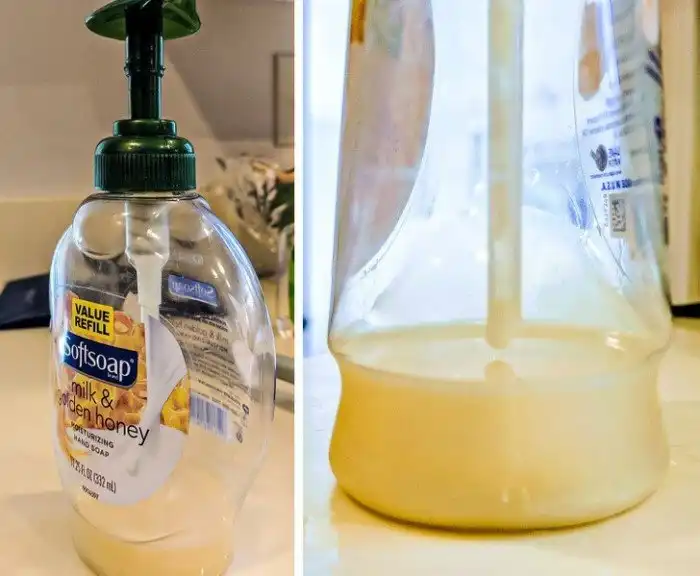 "В этой бутылке покупателям предлагается дополнительный объем жидкого мыла бесплатно. Вот только воспользоваться им невозможно".