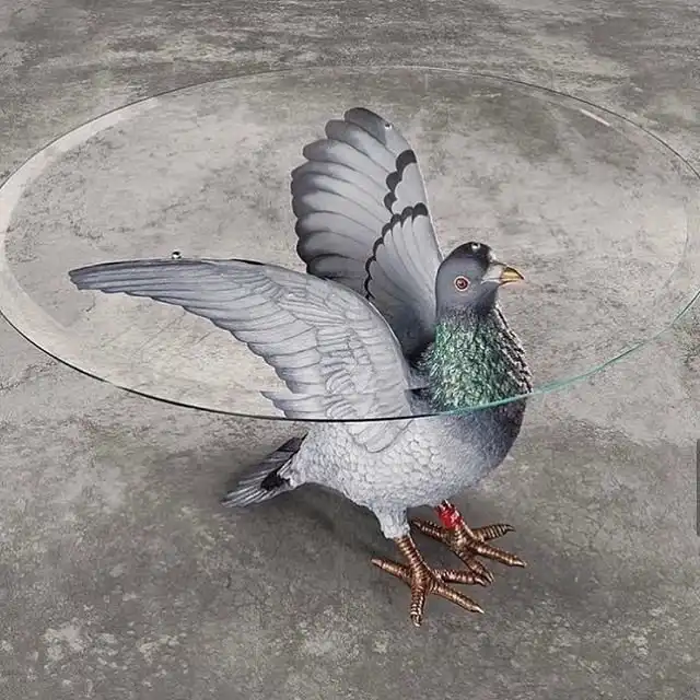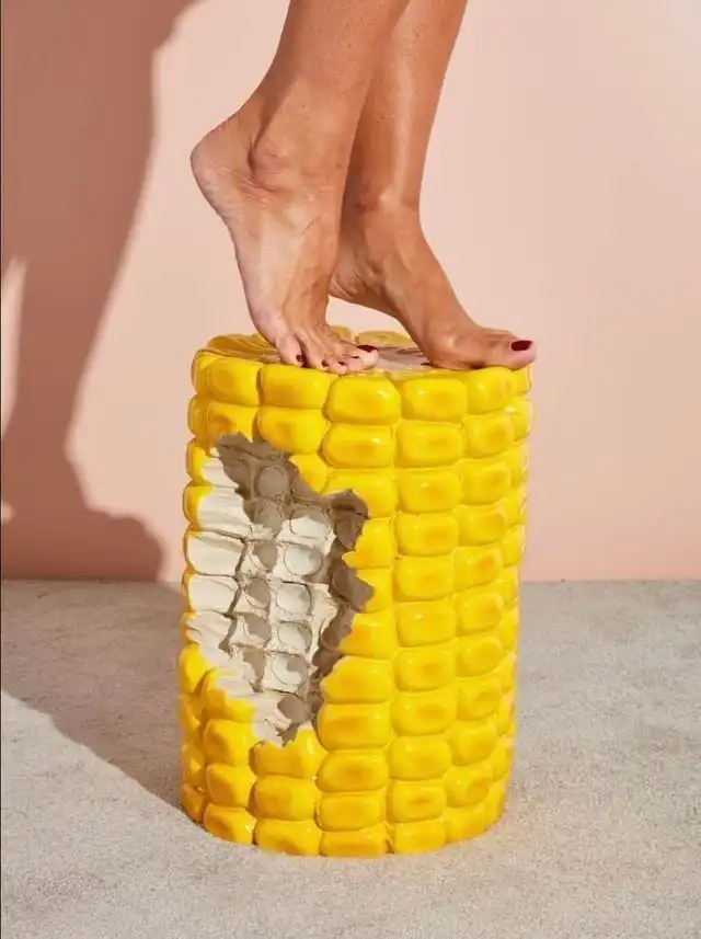 Здесь и кожаное кресло-краб, и стеклянный журнальный столик на крыльях голубя, и пуфик в виде кукурузы. В общем, всё то, на что так старательно охотятся любители всего экстравагантного и супернеобычного, чтобы утащить в своё логово. Интересно, а как их гости реагирует на все эти украшалки дома?