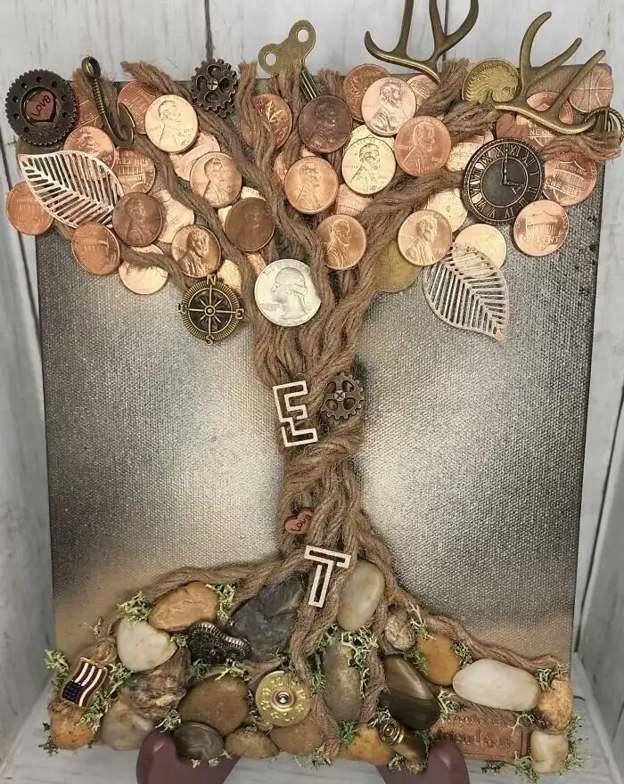 1. "Моя 90-летняя мать в хосписе, и мы готовимся к продаже недвижимости. Я не могла продать ее броши. Слишком много воспоминаний, поэтому я сделала это дерево"