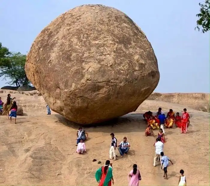 10. Этот огромный валун стоит на крутом склоне на юге Индии уже 1400 лет