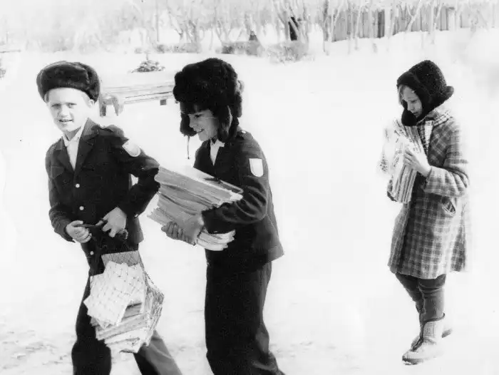 6. Пионеры заняты сбором макулатуры. с.Родино. 1985 год