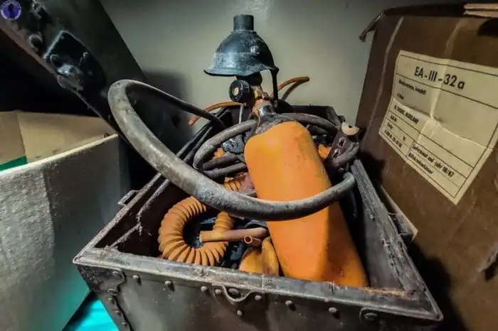 Внутри были серьёзные запасы медицинских инструментов и медикаментов. Здесь они сохранились ещё с советских времён и произведены в теперь уже не существующей ГДР.