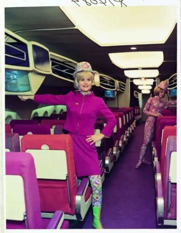28. Стюардессы американской авиакомпании «Braniff International Airways» в психоделической униформе, разработанной итальянским модельером Эмилио Пуччи. 1966 г.