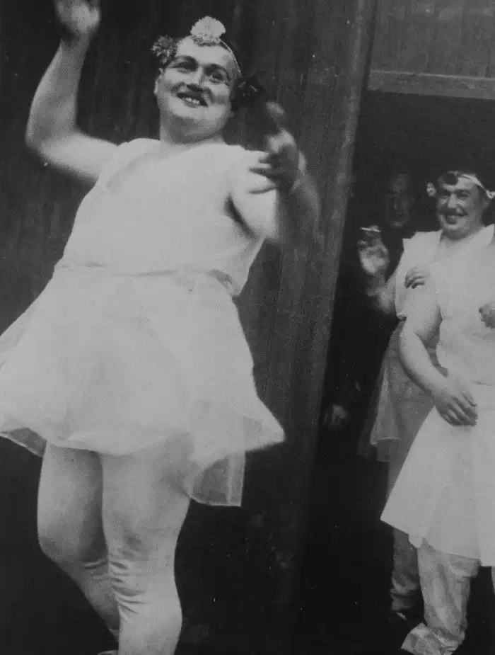 Французские солдаты, переодевшиеся в женщин, развлекают своих сослуживцев. Линия Мажино. Третья Французская республика. Март 1940 года.