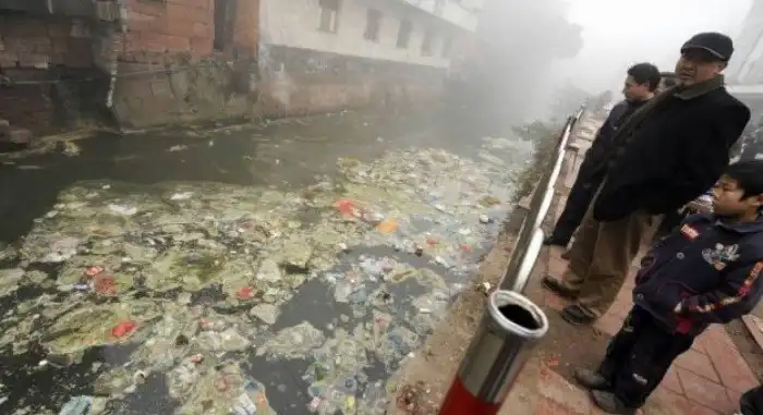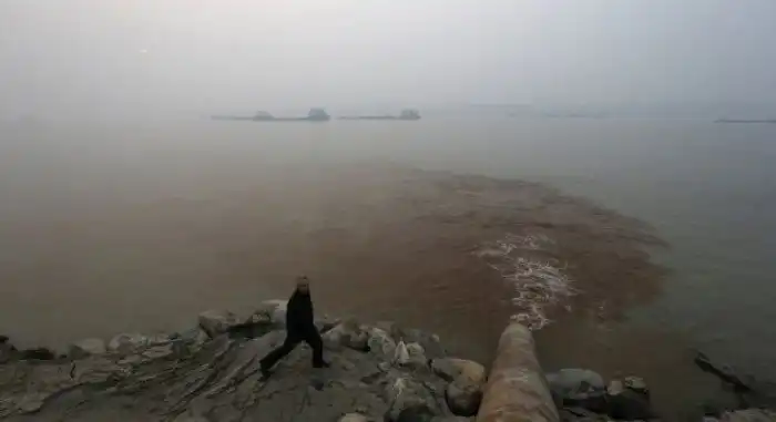 Жители Чжугао с отвращением смотрят на загрязненную реку, протекающую через их город