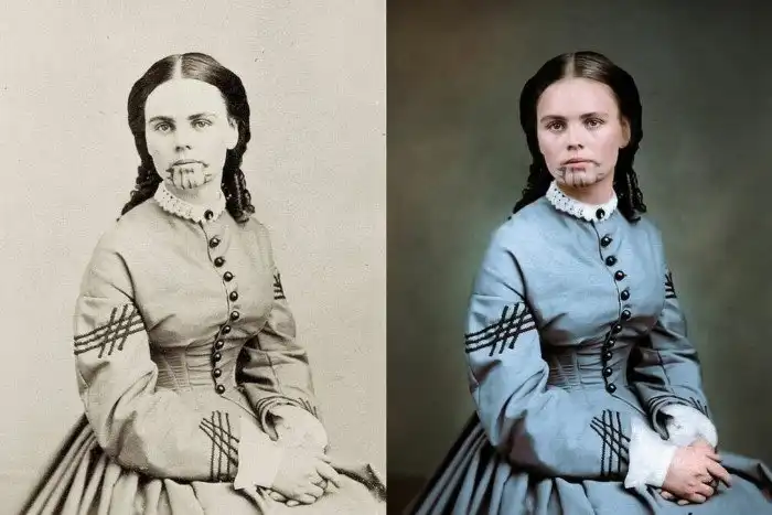 Олив-Энн Оатмэн (1837 – 1903 гг.) – девушка с татуировкой, похищенная индейцами и несколько лет прожившая в племени