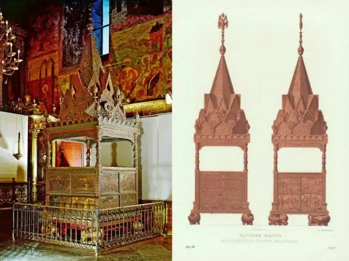 В Древней Руси «царское сидение» — специально устанавливавшееся кресло под балдахином в соборах, где молился царь, — называлось «престолом». Самый известный и древний из сохранившихся — Престол Мономаха в Успенском соборе Московского Кремля. Он датируется 1551 годом и был заказан самим Иваном Грозным. По легенде, первый такой престол прислал в Россию византийский император Константин Мономах.