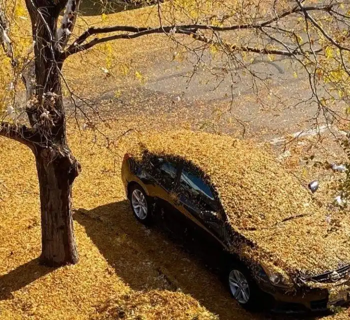 12. "У нас вчера был первый снег. Дерево решило сбросить все свои листья на мою машину"