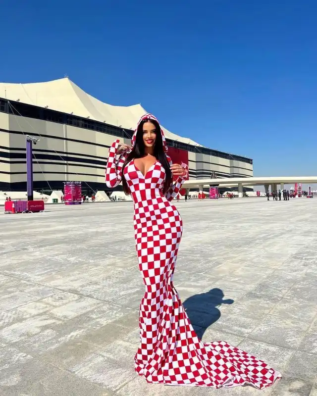 Ивана Кнолль болеет за Хорватию и прославилась тем, что надела нижнее белье в цветах своей страны. Интересно, что в мусульманском Катаре не оценили этого - по слухам, модель хотят выгнать из страны за столь "яркое" поведение и фривольную одежду.