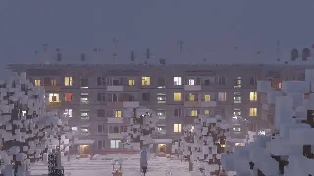 Пользователь Reddit построил в игре небольшой двор с панельками и гаражами.Комментаторы влюбились в заснеженный дворик типичной российской глубинки.