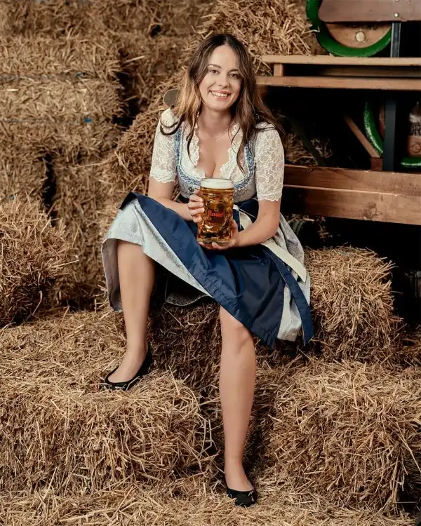Фотографии из сельскохозяйственного календаря Jungbauernkalender с молодыми фермерами, который ежегодно выпускается в женском и мужском варианте. Здесь - фройляйн с пивом.