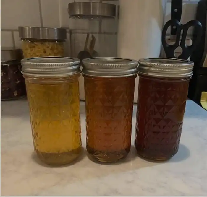 Разные цвета меда, который собрали: весной, летом и осенью