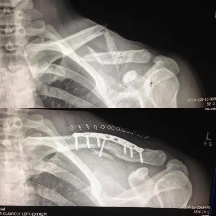 У друга была сломана ключица, до и после операции