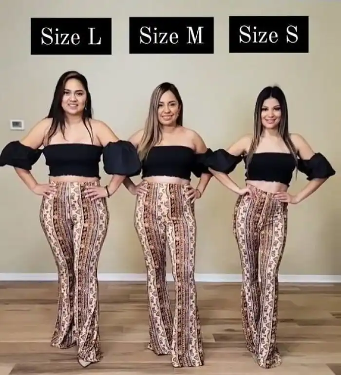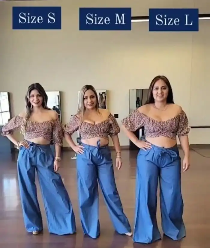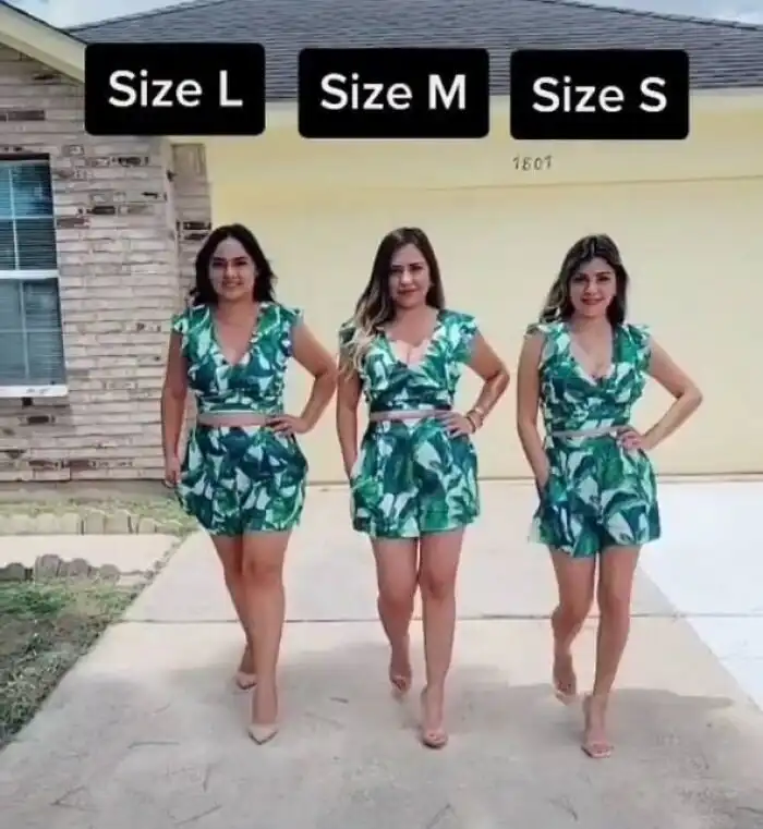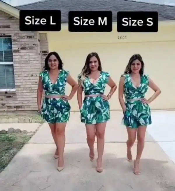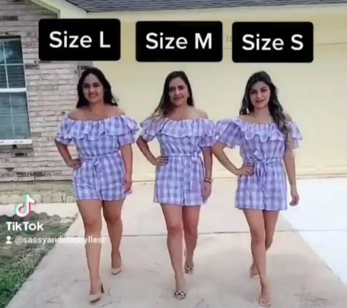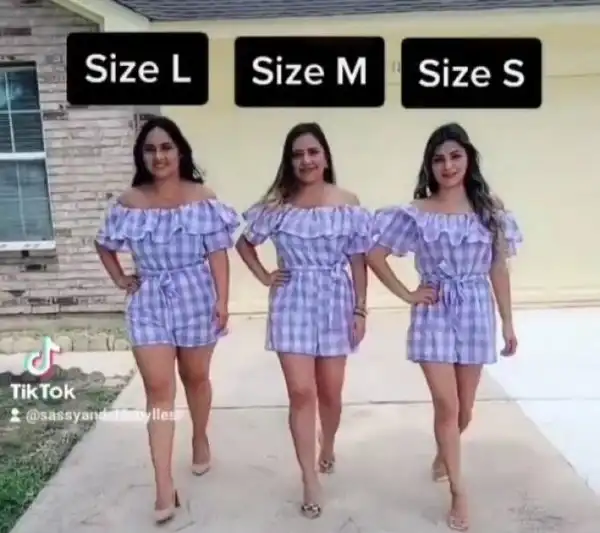 S, M, L: девушки примеряют одинаковые наряды, чтобы показать, как они смотрятся в разных размерах