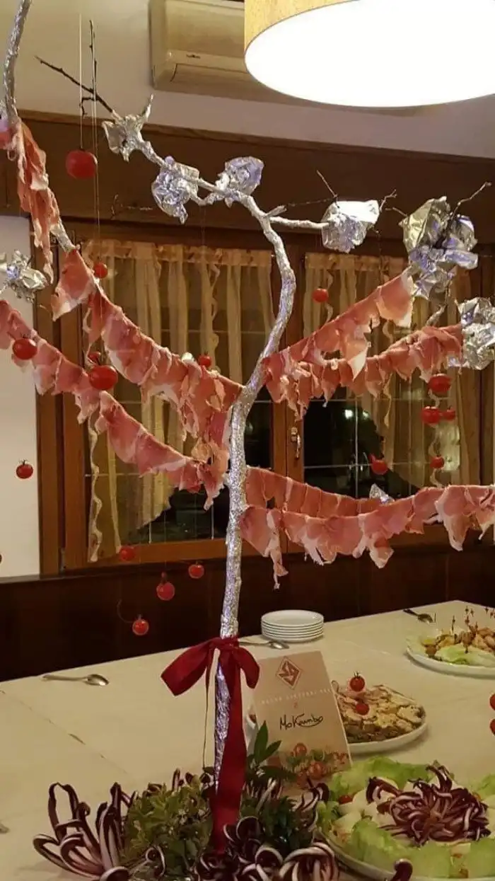 Рождественское дерево-прошутто с помидорами в качестве шаров