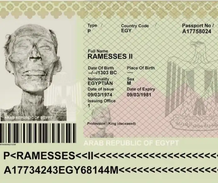3. В 1974 году фараону Рамсесу II выдали настоящий египетский паспорт, чтобы его 3000-летнюю мумию можно было законно перевезти в Париж для реставрации