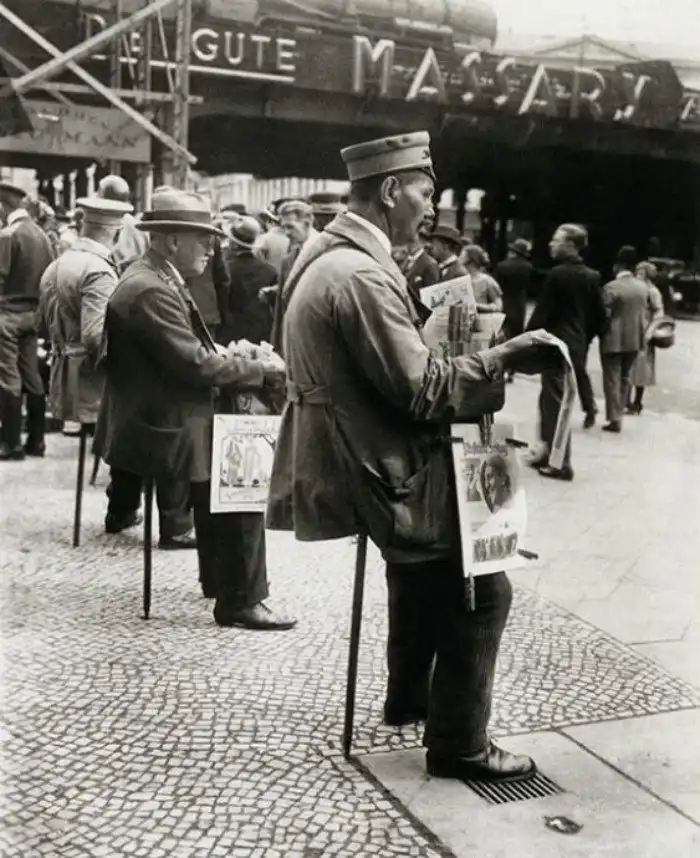 30. Продавцы газет на стульчаках. Берлин, 1927 год