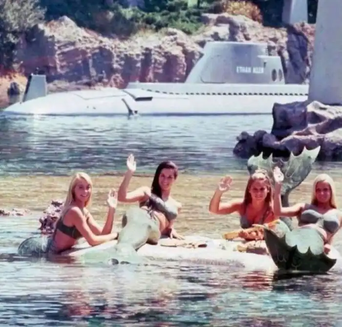 37. Русалки в Диснейленде машут пассажирам аттракциона «Подводная лагуна», приблизительно 1960 год