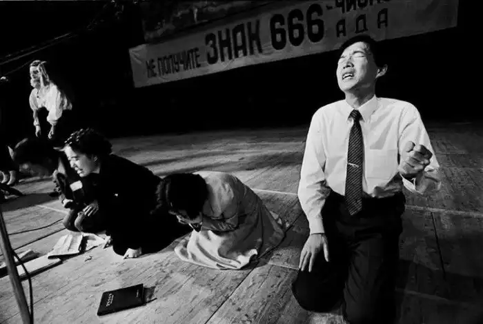 39. Коллективная молитва одной из сект в ожидании конца света, Москва, 1992 год