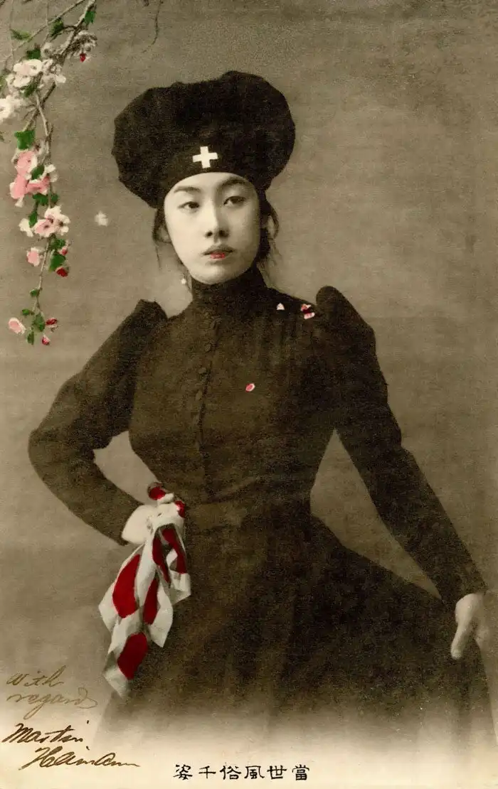 12. Японская медсестра в черном во время русско-японской войны, 1905 г.