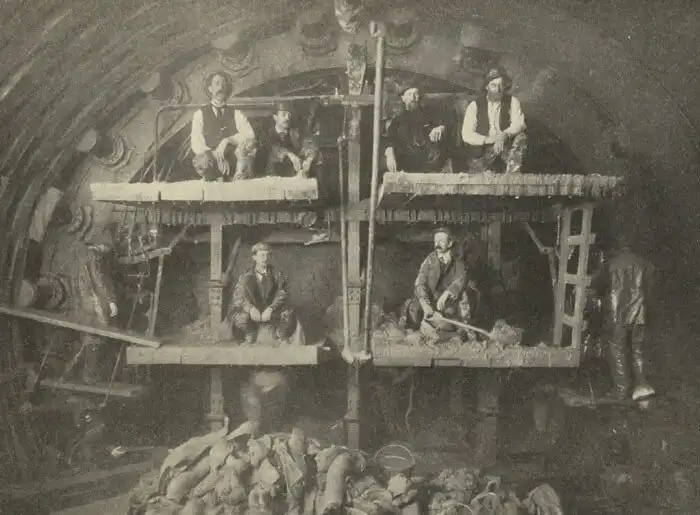 32. Рабочие строят канализацию в Чикаго, 1912 год