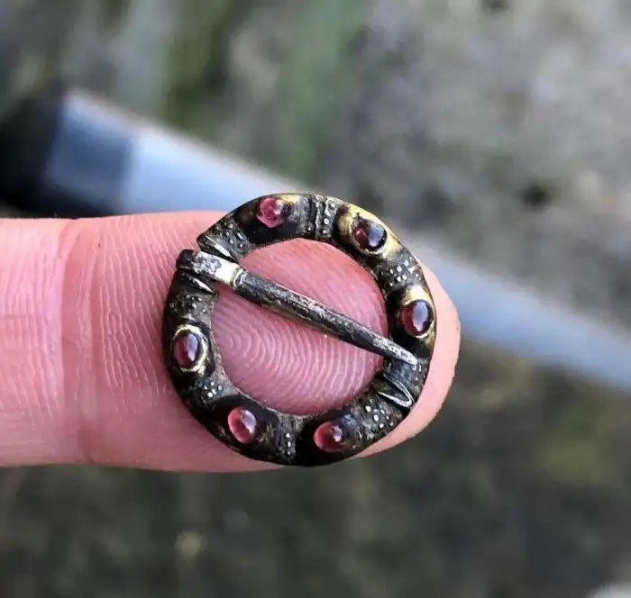 Мне кажется, что камни — это гранаты. Возраст около 700 лет, найдена мной в Норфолке, Великобритания.