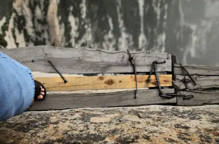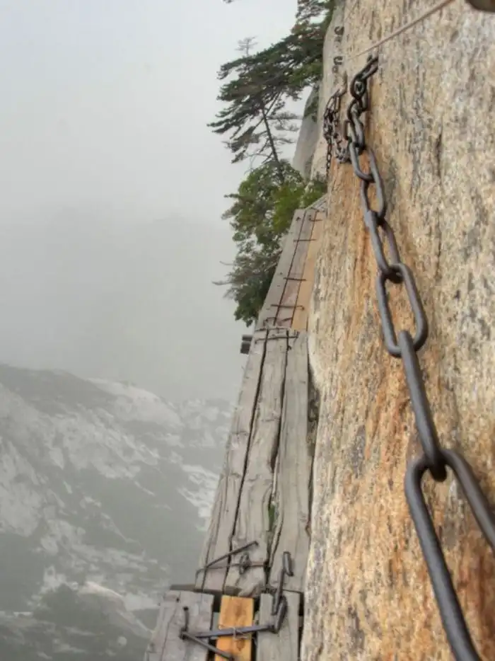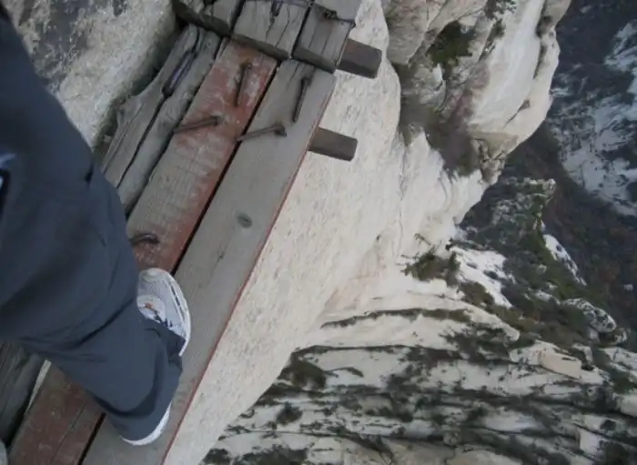 На свете есть много возможностей рискнуть жизнью: к услугам экстремалов такие виды спорта, как прыжки с парашютом, скалолазание, катание на сноуборде с крутых склонов и прочие захватывающие вещи. В эту же копилку можно положить и самую опасную пешеходную тропу в мире. Она находится в Китае на горе Хуашунь и называется "Прогулкой по доскам".