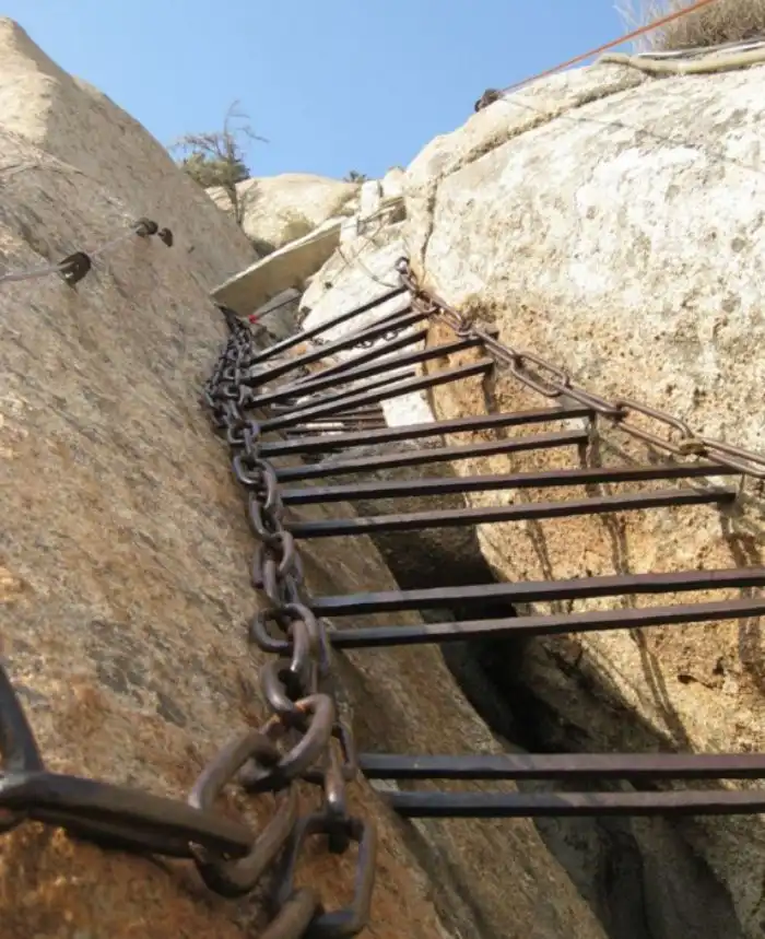За дополнительную плату в 12 долларов можно подняться по этой металлической лестнице. За это вам дадут 2 крюка, которые можно дальше использоваться для того, чтобы цепляться за гору