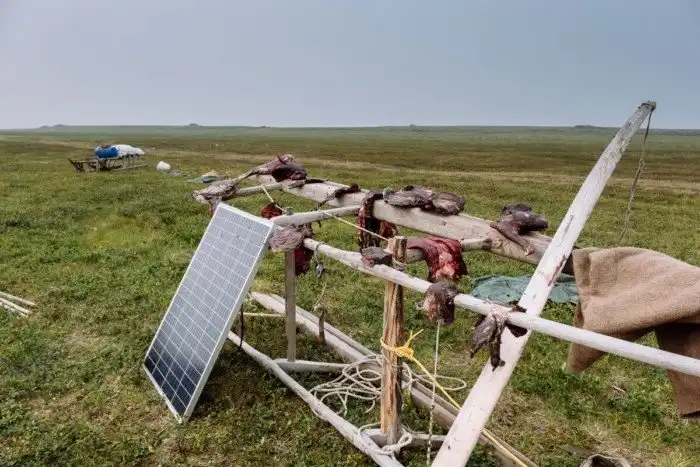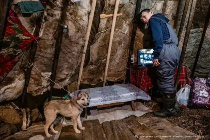 В стойбище есть генератор, но его включают на несколько часов в сутки, когда вся семья собирается вечером вместе. А у некоторых даже телевизоры и спутниковая тарелка на ближайшей лиственнице.