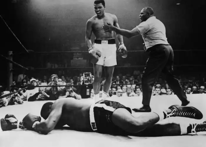 Мухаммед Али отправил Сонни Листона в нокаут уже в первом раунде боя, 1965 год. Этот удар Али вызвал много споров, и его называли "ударом-призраком"