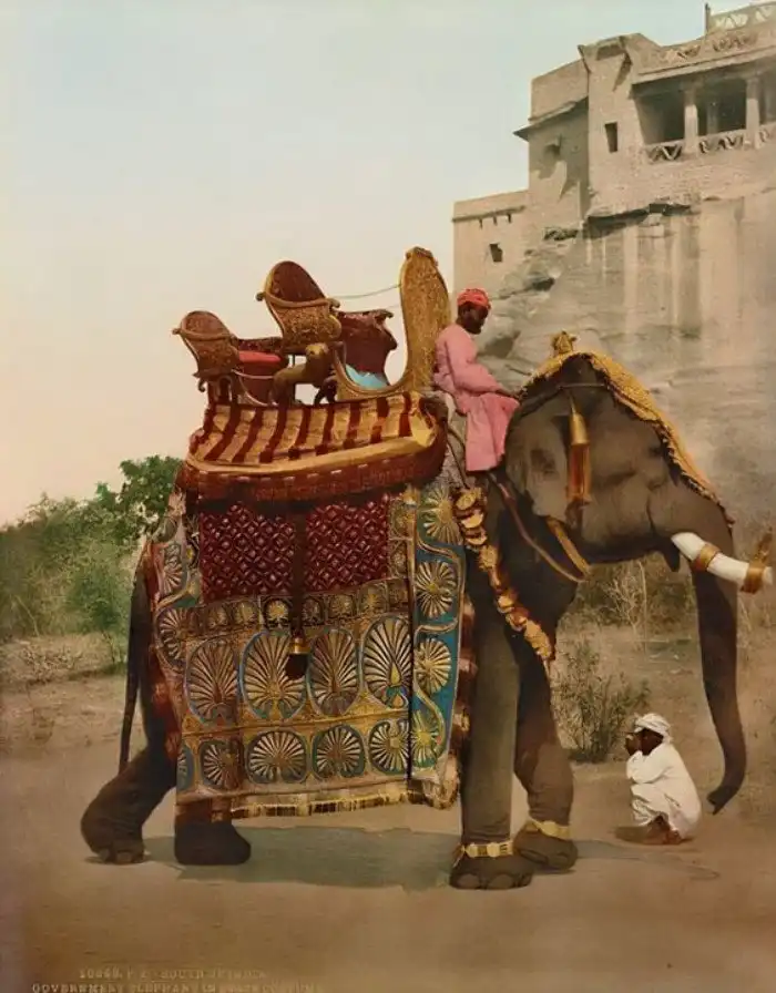 10. Правительственный слон в праздничной упряжи. Индия, около 1900 года