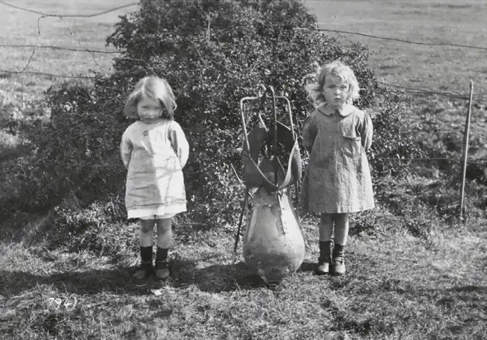 16. Barbara Gower и Margaret Kemp с неразорвавшейся 110–фунтовой бомбой с Цеппелина. Dereham, Norfolk. Первая мировая