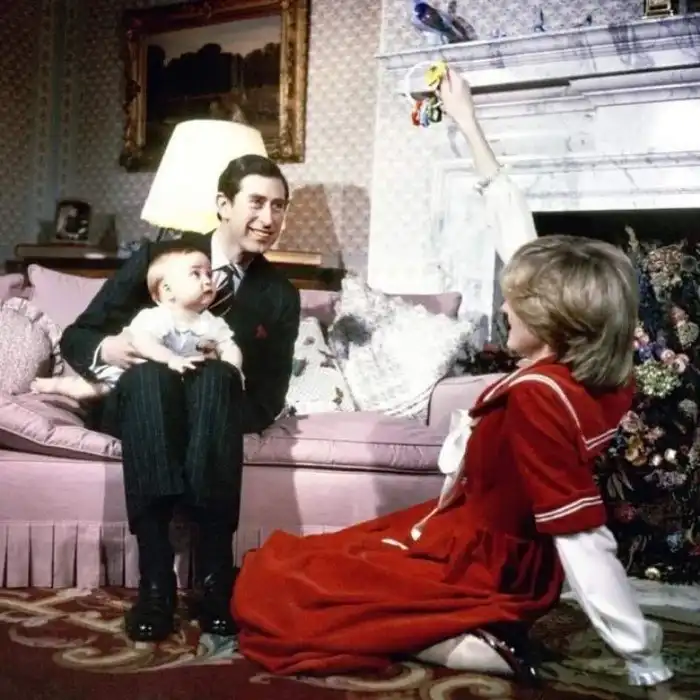 17. Принцесса Диана и принц Чарльз с сыном Уильямом в Кенсингтонском дворце, 1982 год