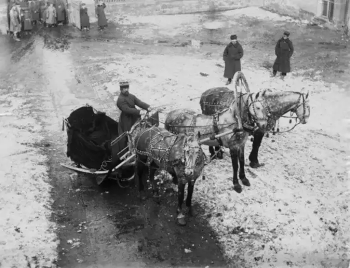 30. Тройка на улице Кузнецкий мост в Москве. 1875 - 1885 годы. Российская империя. Автор: Петр Павлов