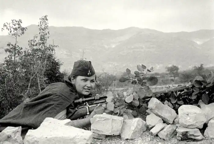 35. Снайпер 255-й Отдельной Краснознамённой бригады морской пехоты Черноморского флота Миронова Елизавета Фёдоровна. 1942-1943 годы