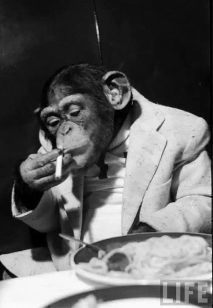 37. Шимпанзе Зиппи, исполняющий роль Читы в телесериале про Тарзана во второй половине 50-х гг.