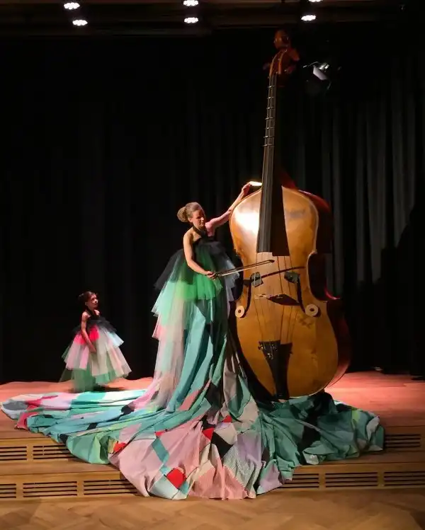 Унцелло меньше всего похож на музыкальный инструмент. Он изготовлен из дерева, колышков, струн и аквариума, который усиливает звук во время игры.
