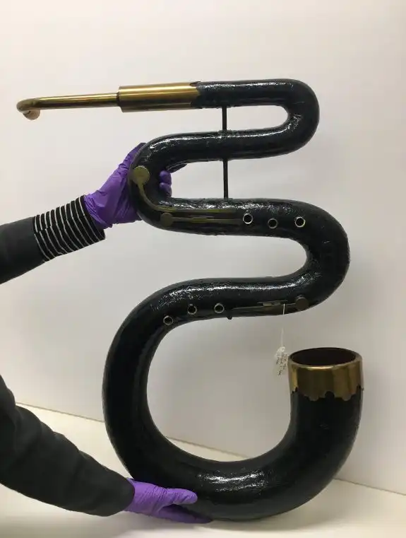 Этот инструмент функционирует по принципу басового инструмента семейства саксгорнов — эуфониума. Также он воспроизводит крайне забавные звуки, издаваемые водой, выливающейся в фаянсовую чашу под сильным напором. Столь необычный инструмент был специально сделан для концерта Royal Liverpool Philharmonic Orchestra, который состоялся 1 апреля 1960 года.