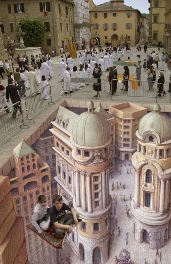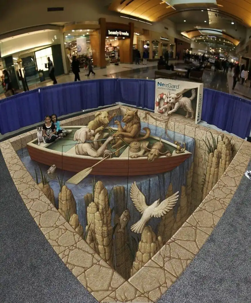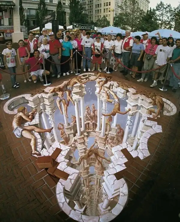 Курт Веннер из Мичигана - иллюстратор и уличный художник, создающий настоящие шедевры 3D-живописи в объемах городских пространств, превращая обычные улицы, скверы, здания, залы и даже автомобили в пространства из иного измерения, завораживающие своей высокохудожественной, детально прописанной реальностью.