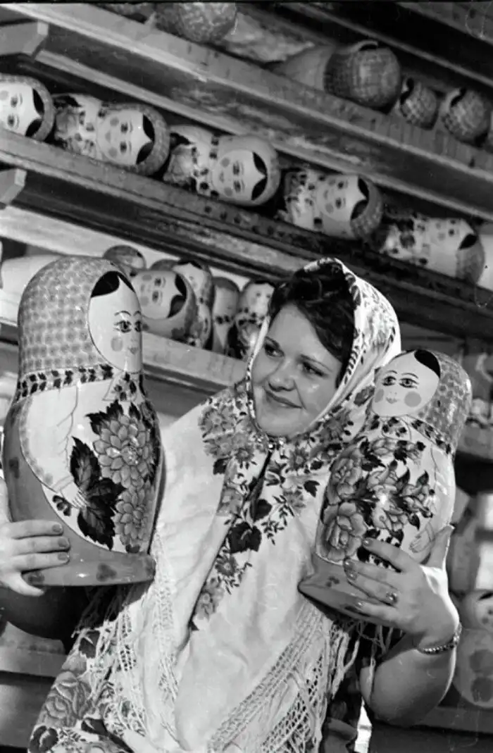 8. Работница Семеновской фабрики росписи с матрешками. Фото В. Войтенко, Горьковская область, СССР, 1970-е гг